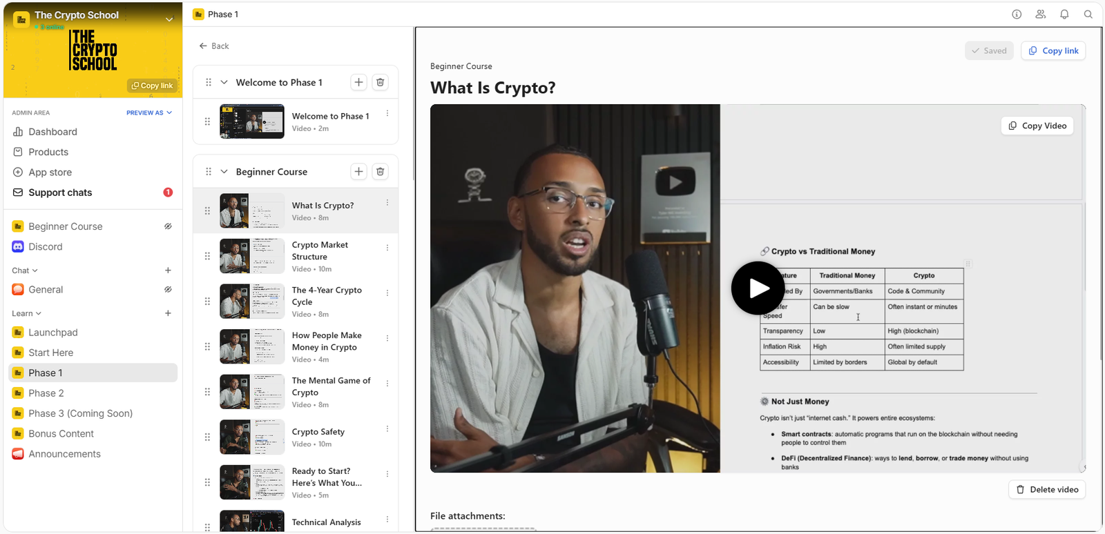 40+ hours of organized lessons and workshops guiding you from the basics of crypto to building and executing your own strategy.
